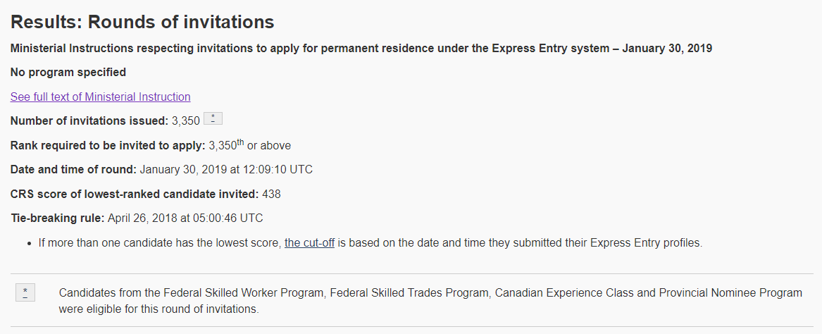 draw 30/01 express entry canada